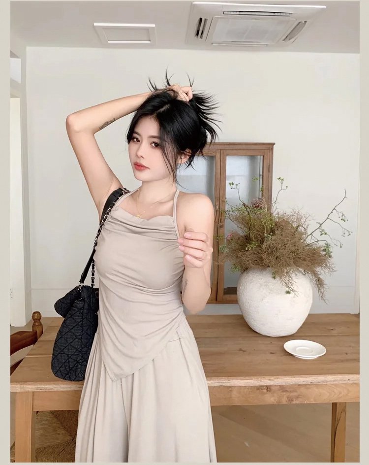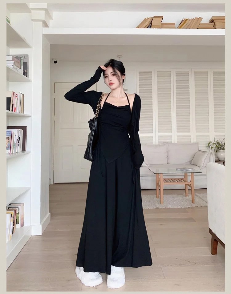 ชุดเซ็ทคาร์ดิแกนเสื้อสายเดี่ยว ชายเสื้อไม่สม่ำเสมอ ชุด 3 ชิ้น ดูผอม สำหรับผู้หญิง